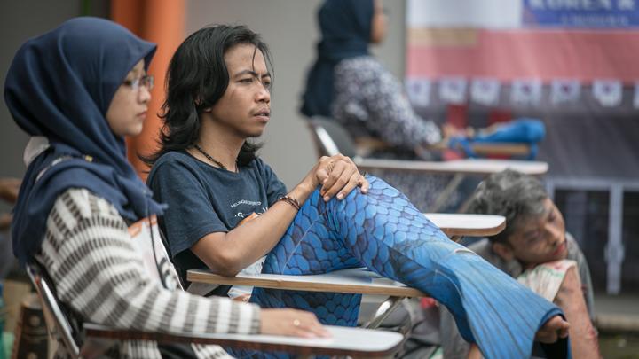 INTRONESIA.ID, Solo - Lomba melamun digelar di Solo, lomba melamun ini diinisiasi oleh Jinju Academy, salah satu tempat kursus bahasa Korea yang berlokasi di Jalan DI Panjaitan, Solo, Minggu (5/3/2023). Selama 1 jam, ada sebanyak 400 peserta yang mendaftar untuk mengikuti lomba melamun ini, namun hanya 40 orang yang dipilih. Peserta dari berbagai daerah, antara lain Medan dan Jogja. Sejak pukul 10.00 WIB. Mereka duduk di halaman Jinju Academy, di bawah terik matahari dan menghadap Jl. D.I. Panjaitan.